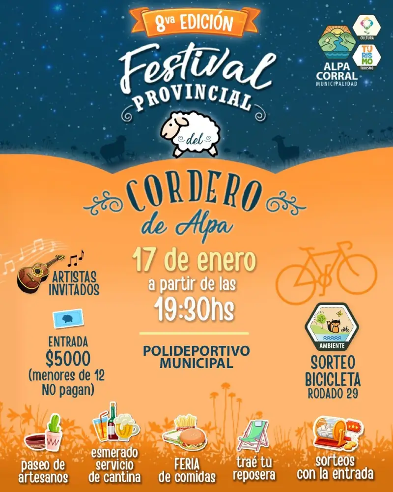 La cuenta regresiva ya empezó: llega la 8ª edición del Festival del Cordero, una propuesta ideal para compartir en familia y con amigos, con música en vivo, cultura local y muchas actividades para disfrutar desde temprano.